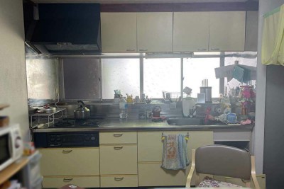 キッチンの収納部分が結躍してカビ臭くな っていることから、