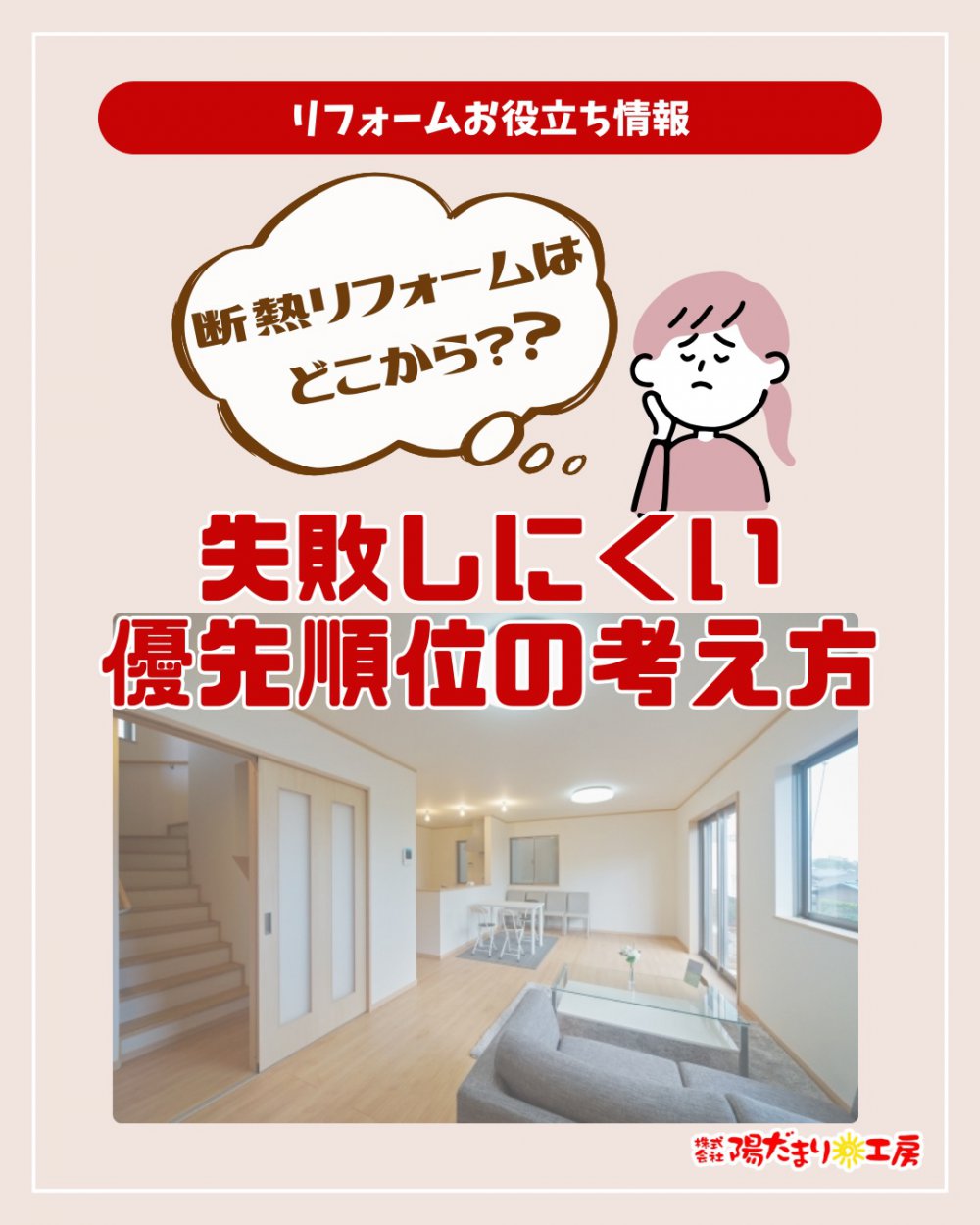 断熱リフォームについてご相談をいただく中で、「どこから手を付けたらいいのか分からなくて…」と迷われている方は少なくありません。