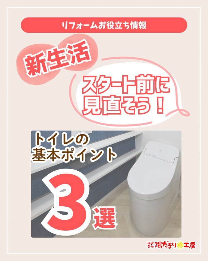 今回は、新生活前に確認しておきたいトイレの基本ポイントを3つご紹介いたします。