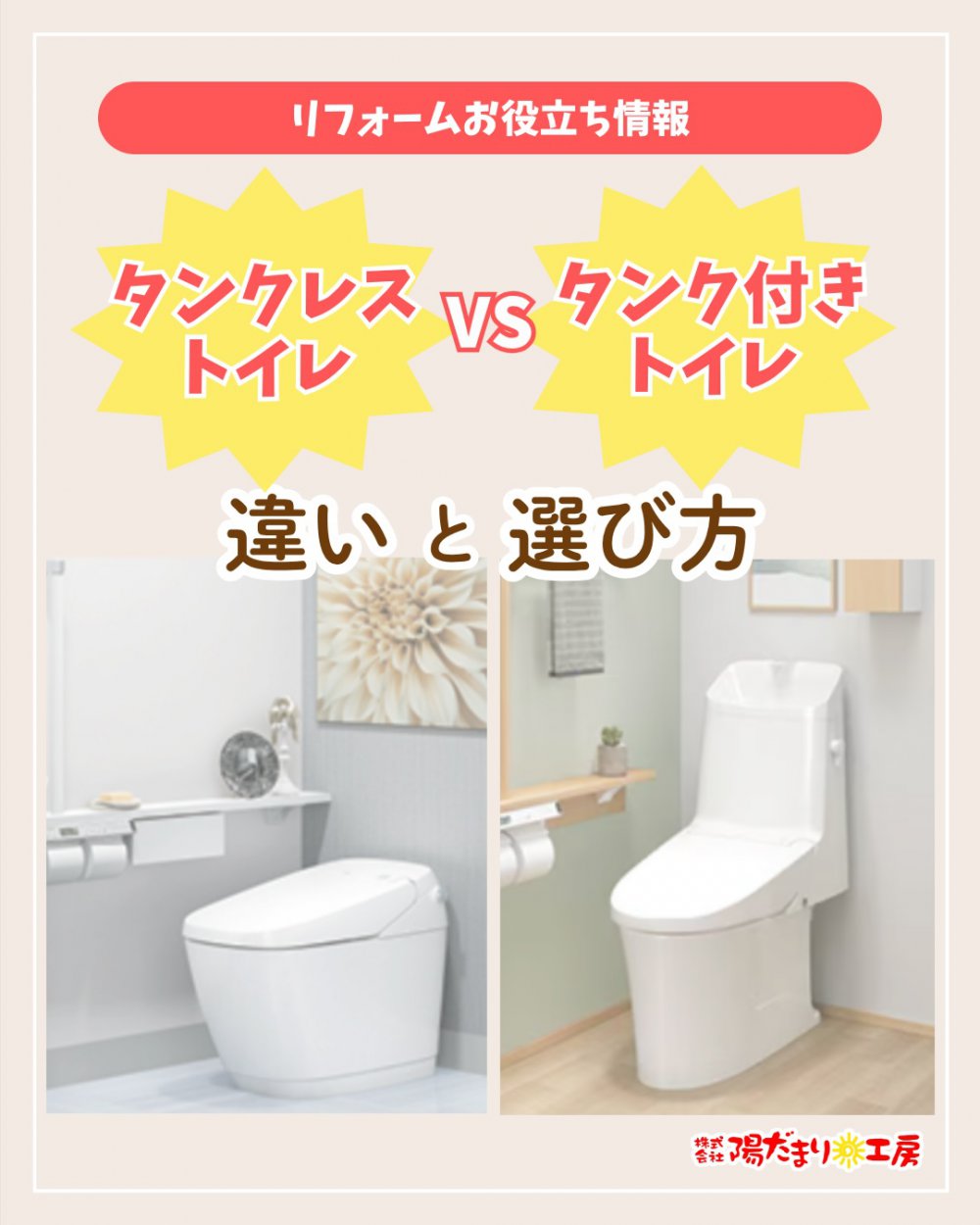 トイレのリフォームを考えたとき、多くの方がまず悩むのが「タンクレストイレ」と「タンク付きトイレ」のどちらにするか。
