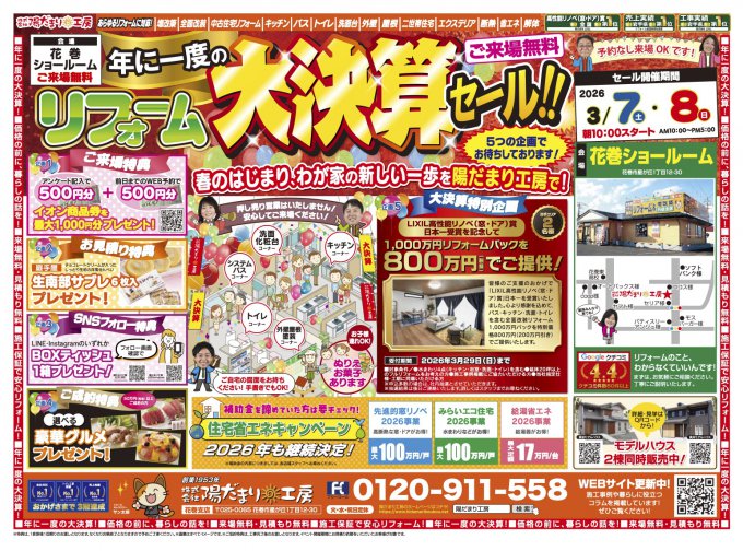 岩手県花巻市近郊にお住まいの皆様へ!陽だまり工房からとってもお得な大決算セールのご案内です!春のはじまり、わが家の新しい一歩を陽だまり工房で!