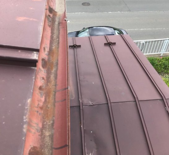 現地調査にお伺いした所、雨樋と屋根の部分が、